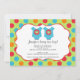 Start your event off right with our cute baby bodysuit clothes twins Baby Shower invitation featuring the sweetest twin baby outfits with baby owls set on a polka dots background with red, orange & turquoise blue polka dots. Our modern & colourful carriage shower invitation is perfect your twins baby shower celebration. .Just personalize with your information and you're all set to go! Matching items including baby shower postage, favour stickers, thank you cards & thank you stickers are also available in our shop. © Dreamlike Magic