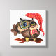 Canvas Print with Cute Baby Owl In Christmas Hat and Gift - Painting Funny Bird Fun Collection - Choose / Add Your Unique Text / Name / Colour - Make Your Special Gift - Resize and move or remove / add elements - image / text with customization tool. Painting and Design by MIGNED. Please see my other projects / paintings. You can also transfer my designs to more than 1000 Zazzle products !