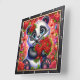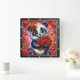 This adorable square wall clock features a heartwarming digital illustration of a fluffy baby panda with large, sparkling blue eyes. The panda is wearing a vibrant red rose crown and is joyfully clutching a massive bouquet of deep red roses tied with a matching ribbon. The background is a magical, high-energy explosion of pink and red hues, filled with floating hearts, shimmering stardust, and whimsical floral patterns. The artwork is framed by a modern black wood-textured border with bold white numeric markers for easy and clear timekeeping. This functional piece of home decor is a perfect gift for panda lovers, Valentine Day, or as a charming addition to a nursery or bedroom. The rich, vibrant color palette and sweet character design provide a cheerful and loving focal point for any room.