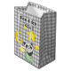 Cute baby panda with a bright yellow moon and stars on a soft grey gingham pattern.