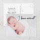 Featuring modern typography with the words "I Have Arrived" Personalized this elegant and modern baby photo birth announcement postcard. Share the photo of your newborn and send your gratitude and joy at the same time, customizable text, birth stats on the back with your address, and names.