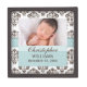 Customize this beautiful 3x3 inch eggshell blue and brown damask baby and infant photo gift and trinket jewellery box with a picture of your newborn and personalize it with his name and date of birth. This makes a lovely new baby or christening or baptism gift for a new mom or grandmother. Designed by Chrissy H. Studios, LLC.