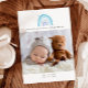 Modern and whimsical birth announcement card featuring a hand drawn illustration of a blue rainbow. You can add your newborn baby's picture in the middle and the baby stats at the bottom. You can also add a second picture with a message on the back. Perfect for your miracle baby boy. The rainbow motif is used a lot when you had a difficult pregnancy or after a loss.