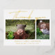 Baby Photo Thank You Modern Script Birth Template Announcement Foil Postcard features two of your favourite photos of your newborn baby boy or baby girl. The front features "Thank You" in hand lettered calligraphy script in real gold foil. Below your photos add additional information such as your newborn baby's name and birth information. On the reverse add your personalized custom message of thanks from the parents and family of the newborn. PHOTO TIP: centre your photos before uploading to Zazzle. Designed by ©Evco Studio www.zazzle.com/store/evcostudio
