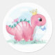 Pink Baby Dinosaur with Crown Classic Round Sticker