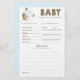 Baby predictions and advice - gold balloon - teddy bear baby shower game cards