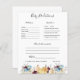 This baby shower game card features beautiful soft watercolor pumpkins & florals in shades of dusty blue and white that are balanced with sweet orange and burgundy purple, making it a warm and airy palette. Change background colour or add graphics to match your shower theme. Need coordinating graphics please contact me for a custom order. Of course it's not required that you play games at the baby shower, but consider this: You're going to have an all-ages group, and most of the guests have probably never met one another before the party. Mixing in a few of these classic baby shower games is a perfect way to break the ice. These professionally designed cards are quickly customizable. Add your custom wording to this design by using the "Edit this design template" boxes on the right-hand side of the item, or click the blue "Customize it" button to arrange the text, change the fonts and colours and to also add additional information or images to this design. Click "Customize Further" to open full editing options. If you need any coordinating items, (thank you cards, etc.) please contact me for a custom order. ****For custom requests you need my help with, do not place this merchandise in your cart. Instead, email me your request at lauralise@iyhtvdesigns.com A link to your merchandise will be emailed to you once the item is available. You can use that link to place your order. Please allow up to 48 hours.
