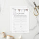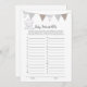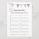 A fun game for the gender reveal party is the Baby products abc's game. This game features a silver grey and brown banner at top and a sitting baby elephant. On the reverse is a smiling baby elephant with its trunk lifted upward with templates.