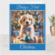 An adorable Christmas scene with a sweet Golden Retriever puppy curiously admiring the Christmas decorations. Add your own personalized text.