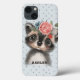 Un joli raton laveur gris aquarelle avec une décoration florale sur la tête. monogramme facultatif