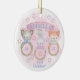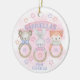 An adorable watercolor Baby’s First Christmas ornament with three sweet baby rattles. The rattles consist of a baby bear, a baby rabbit, and a baby fox. A soft, pink pastel watercolor backdrop adds an extra soft, powdery feel to this gorgeous, dreamy ornament. Personalization is available for the baby’s name and for a sweet note to leave on the back of the ornament. This is a great gift to give new parents or to celebrate this special milestone for a little one.