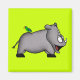 Cute cartoon baby rhino with a tiny tusk and a green and blue bird perched upon his little grey rump. Original digital cartoon art by Taylor Addams.