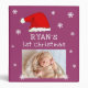 Baby`s First Christmas Purple Red Santa Hat Snowflake Photo Album. Cute baby first Christmas design with a Santa hat, snowflakes and a baby name in a white script - personalize with your baby`s name and photo.