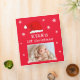 Baby`s First Christmas Red Santa Hat Snowflake Photo Album. Cute baby first Christmas design with a Santa hat, snowflakes and a baby name in a white script - personalize with your baby`s name and photo.