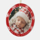Commemorate a cherished milestone with this sweet and festive Baby’s First Christmas ornament. Designed in classic holiday style, this round photo ornament features a bold red background adorned with delicate white snowflakes, framing your little one’s photo in a heartwarming and memorable way.