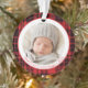 Mark your little one’s milestone moment with this cozy and classic Buffalo Plaid Baby’s First Christmas Ornament. Featuring a timeless red and black buffalo check border, this round ornament is designed to showcase your baby’s photo in the center with the text “Baby’s 1st Christmas • 2025” elegantly printed around the frame.