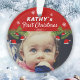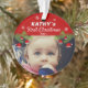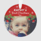 Cute Baby`s First Christmas Santa Hat Snowflake Pine Photo Ornament. Pine tree branches with Santa hats and snowflakes. Personalize the ornament with your baby`s photo, name and year of birth. A sweet keepsake for the baby`s 1st Christmas.
