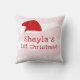 Baby`s First Christmas Santa Hat Snowflake Pink Baby pillow. Cute baby`s first Christmas design with a Santa hat, pink watercolor stripes, snowflakes and a baby name in a white script - personalize with your baby`s name.