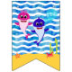 This baby shark-themed banner can be customized for your little one's party. Replace the letters with your own wording/font colours!
