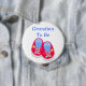 Sweet Grandma to Be button pin, with adorable graphics of a colourful pair of red baby tennis shoes, with blue text, on top, that reads Grandma To Be. Perfect for the new grandmother to be at the baby shower. Text is customizable to say what you want.