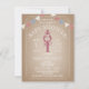 Une invitation à faire bouillir un baby shower à basse température, illustrée d'un homard tenant une sucette. en vichy rouge, point de polka bleu et chevron beige au sommet. Arrière - plan est un papier stock de carte marron inspiré.
