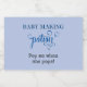 Baby Shower Mini sparkling wine Bottle favours with the popular "Baby Making Potion" phrase. The design features hand lettering with love hearts and a blue colour palette. The fun message is editable and reads "pop me when she pops!" in typewriter text. A lovely idea so your friends can raise a glass, the moment your little one arrives. This design also works on alternative mini bottle labels (beer, wine, spirits, liquor). Please browse our collection for different wordings and coordinating Baby Making Potion favour tags and stickers.