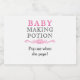 Baby Shower Mini Bottle favours come with all sorts of popular and fun phrases. These mini sparkling wine bottle labels have pink and black lettering which reads "Baby Making Potion" and "Pop me when she pops!". A lovely idea so your friends can raise a glass, the moment your little one arrives. This design also works on alternative mini bottle labels (wine, spirits, liquor). Please browse our collection for different wordings and coordinating Baby Making Potion favour tags and stickers.