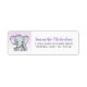 Cet adorable étiquette baby shower présente un éléphant de petite fille violet et gris avec sur un arrière - plan d'aquarelle mauve souple. Facilement customisé en cliquant sur personnaliser.