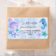Un arrière - plan bleu ciel pastel avec d'adorables animaux de la mer, une pieuvre amicale, un mignon cheval de mer et un trio d'étoiles de mer colorées entourent votre nom et votre adresse et coordonnent avec l'oeuvre d'invitation à l'intérieur. L'art a été créé en aquarelles acryliques sur toile par Audrey Jeanne Roberts, artiste titulaire d'une licence internationale, copyright.