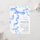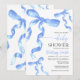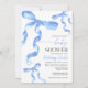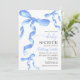Baby Shower Invitation with watercolor blue coquette bow.