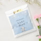 For a baby shower, celebrating a baby boy. A light blue background. Decorated with faux Silver sparkles and a cute little baby elephant boy. Personalize and add the name of the mom to-be.