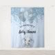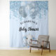 For an elegant Baby Shower. A light blue background. Decorated with faux glitter drips, paint dripping look,glitter, party streamers, blue and silver coloured balloons and a cute elephant baby boy. Personalize and add the name and a date. Can be used as a welcome banner, wall decor for the baby shower or as a photo backdrop.