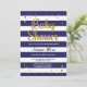 Baby Shower Blue Navy Stripe Gold Glitter Invite