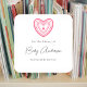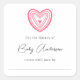 Baby shower bookplate pink heart square sticker
