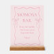 Hébergez le thème parfait du baby shower arc rose avec cet élégant Baby shower Bow rose personnalisé Momosa Bar Acrylique Sign! Doté d'un design d'arc rose délicat, ce panneau ajoute une touche élégante à votre configuration de baby shower d'arc. Idéal pour un thème de baby shower coquette ou toute fête à thème arc, il améliore votre décor de proue. Parfait pour un baby shower de printemps, il complète les thèmes du baby shower de printemps et les idées de baby shower de printemps. Un must pour les idées baby showers roses et un baby shower rose charmant !