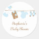 This baby shower envelope seal has a clothes line at the top with some baby clothes hanging from it and a blue bird standing on the line. On the bottom, your easily customizable name and "baby shower" is written. Cocoa Studio