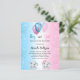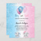For a baby shower for both a baby boy and baby gir. A blue white and pink gradient background. Decorated with glitter and blue, pink and white balloons and glitter dust. A baby boy elephant and a gaby girl elephant. Personalize and add the name of the mom-to-be and party details. The name and the text: Boy or Girl are written with a hand lettered style script