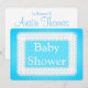 Baby Shower Invitation, blue with white lace