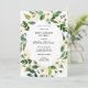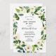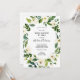 Long Distance Baby Shower by mail invitation featuring watercolor greenery branches and white flowers sweeping over the corners of the design. Personalize with your information or click "Click to customize further" to edit font styles, size and colours.
