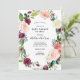Long Distance Baby Shower by mail invitation featuring watercolor greenery branches and beautiful spring flowers in shades of blush, Burgundy, cream and peach sweeping over the corners of the design. A great way to invite your loved ones to help surprise the mama to be with gifts to prepare for baby. Personalize with your information or click "Click to customize further" to edit font styles, size and colours.
