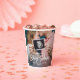 Add an elegant touch to baby shower decorations with chic modern custom photo paper cups. The picture and all wording on this template are simple to personalize. The gender neutral design is suitable for either a new baby boy or girl, and can also be customized for a couples co-ed baby shower. (IMAGE PLACEMENT TIP: An easy way to position a photo exactly how you want is to crop it before uploading to the Zazzle website.) The minimal black and white overlay design features trendy bold brushed script calligraphy, vintage art deco typography and one picture of your choice, such as a mom-to-be pregnancy photo or new parents maternity pic. These stylish customized cups add a unique finishing touch to baby shower celebration decor. Congratulations to the mother to be!