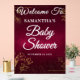 Faites une déclaration d'automne glamour avec cet élégant panneau d'accueil en baby shower bordeaux et or. Doté de fleurs riches et d'accents de feuilles métalliques chatoyants, il est parfait pour des fêtes d'automne sophistiquées.
