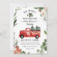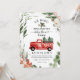 Superbe végétation, florale et flocons de neige avec un camion rouge rempli d'arbres de noël.