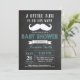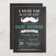 Invitation au Baby shower de la moustache. Petit Homme. Aqua et Grey. Arrière - plan de tableau de bord noir et blanc. Noeud de cravate. Messieurs. Pour plus de personnalisation, cliquez sur le bouton "Customiser" et utilisez notre outil de conception pour modifier ce modèle.