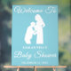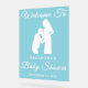 Ce panneau d'accueil de baby shower de noël présente une jolie police de caractères manuscrite bleue et un design minimaliste moderne. Ce signe d'accueil est parfait pour un baby shower à thème minimal neutre pour les femmes ou peut être utilisé pour tout autre événement de bébé neutre pour les hommes.