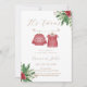 Adorable et élégant, cette invitation à baby shower jumeaux de frères et soeurs comporte un pull rouge et une robe accrochée à une ligne de vêtements d'hiver. Avec une verdure festive et des tons chauds, il est parfait pour célébrer vos petits flocons de neige pendant la saison des fêtes.