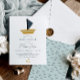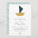 Baby shower de voilier invitation dans un style minimaliste avec voilier bleu et or et motif d'eau à l'arrière. Vous pouvez personnaliser cette invitation avec vos propres détails dans la section "Personnaliser ce modèle".