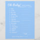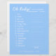 Fun word scramble game for Baby Shower, add or remove text and change background and or text colour(s) to fit your needs. Scramble answers: 1. crib 2. towel 3. stroller 4. playpen 5. night light 6. monitor 7. diapers 8. thermometer 9. car seat 10. bottle 11. shampoo 12. cereal 13. rattle 14. formula