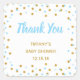 Les autocollants de baby shower personnalisés sont dotés d'un design de confettis en parties scintillant bleue et or.