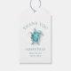 These baby shower favour tags feature a watercolor sea turtle in shades of blue and turquoise. The words "Thank You" are set in a simple serif font. Use the template fields to add your custom text. A cute choice for a boy's under the sea baby shower theme. Art and design by Victoria Grigaliunas. To see matching party decor visit www.zazzle.com/dotellabelle